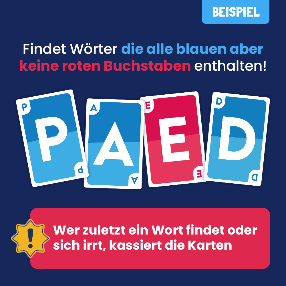 Spielspaß garantiert: Finde schnell ein Wort mit den blauen Buchstaben, aber pass auf die roten auf!